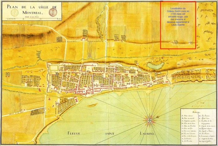 Map shows actual area of Louis farm and residence in late 1600’s